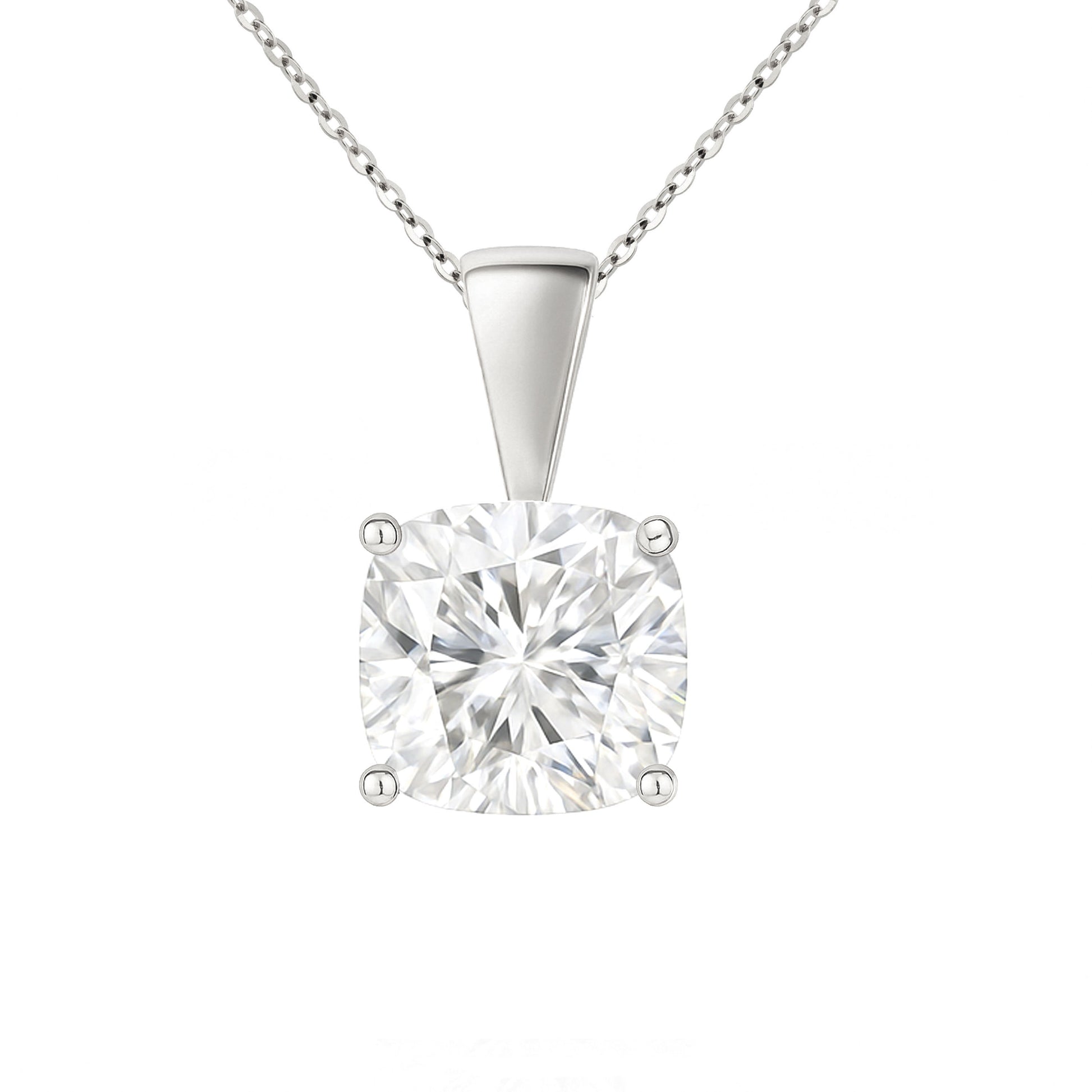 14K Gold Cushion Cut Moissanite Solitaire Necklace - Solid Bail on Cable Chain