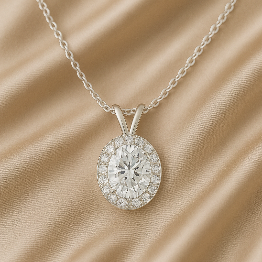 14K Gold Oval Cut Moissanite Halo Stud Earrings