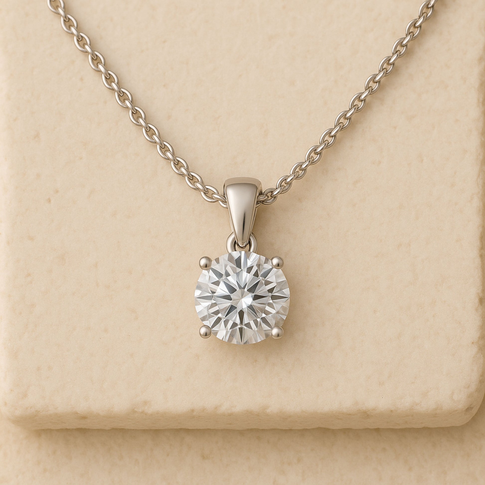 Elevate your jewelry collection with the enduring elegance of our Round Cut Moissanite Solitaire Pendant Necklace. Expertly handcrafted in your choice of solid 14K yellow or white gold, this piece features a brilliant round-cut Moissanite set in a classic 4-prong setting, designed to maximize sparkle.