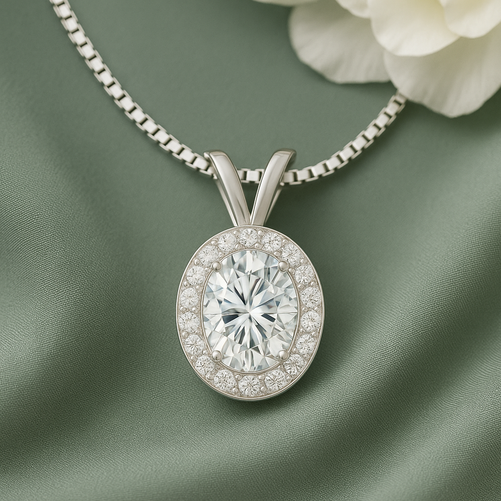 14K Gold Oval Cut Moissanite Halo Stud Earrings