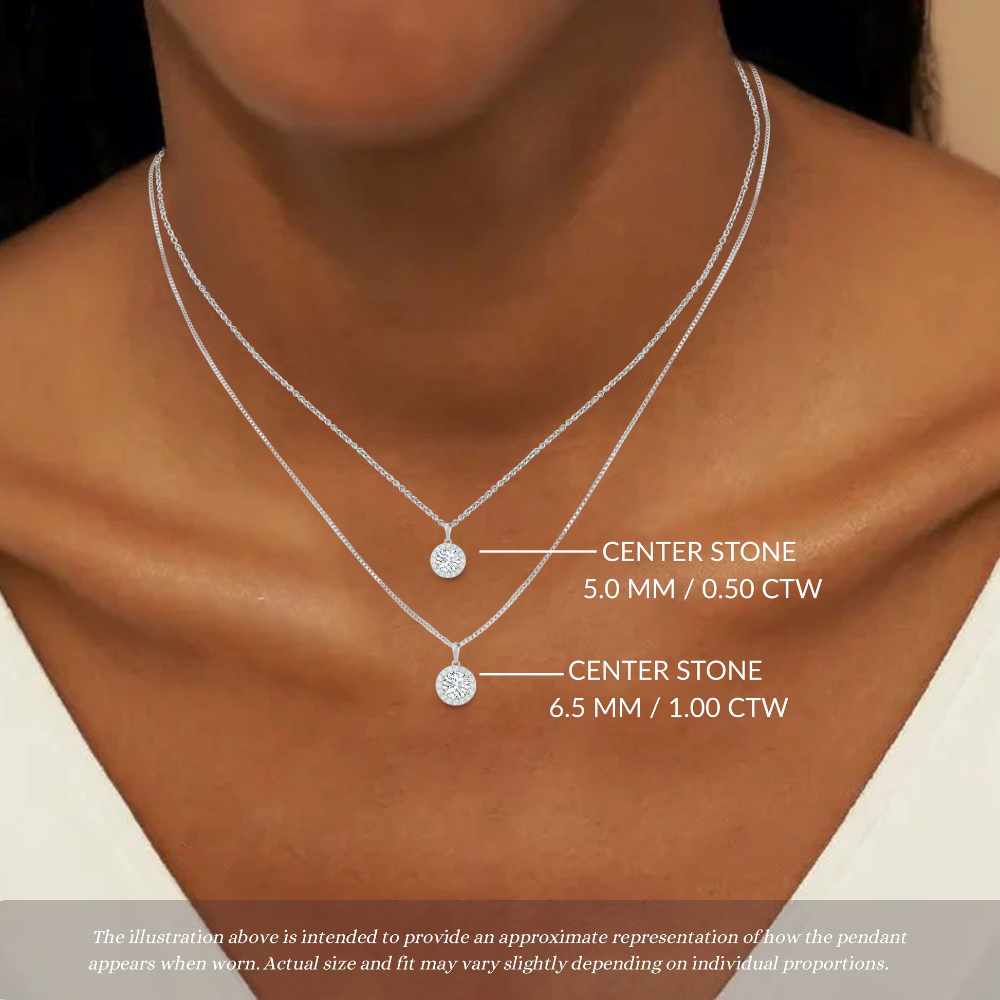 14K Gold Round Cut Halo Moissanite Necklace - Dangle Bail with Cable Chain