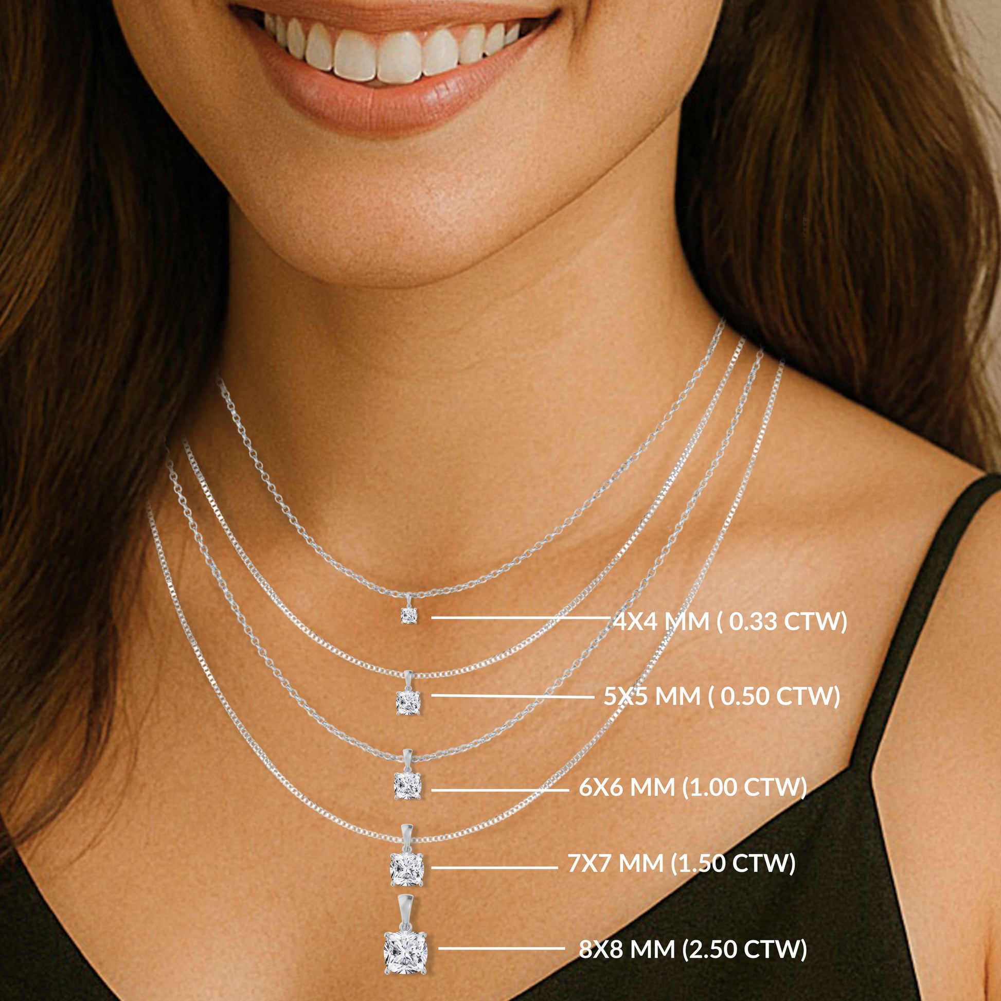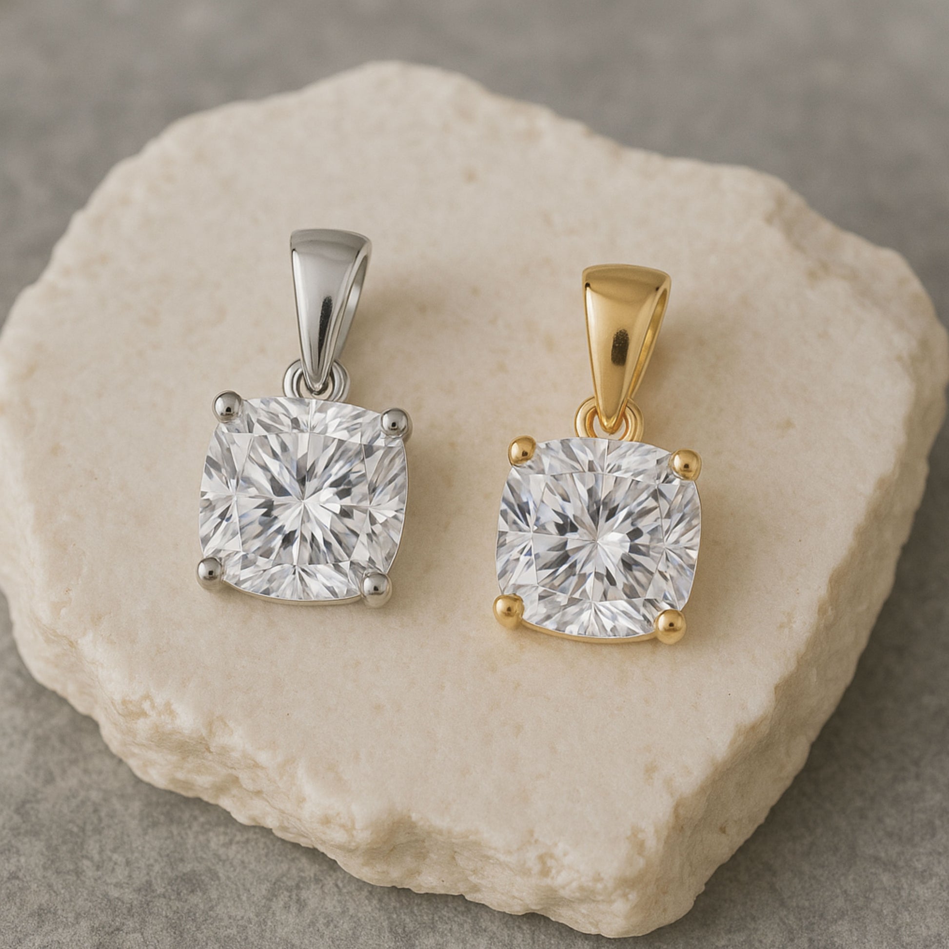 Exuding timeless elegance, the Cushion Cut Moissanite Solitaire Pendant is a refined piece designed to elevate any ensemble — from everyday wear to formal occasions.