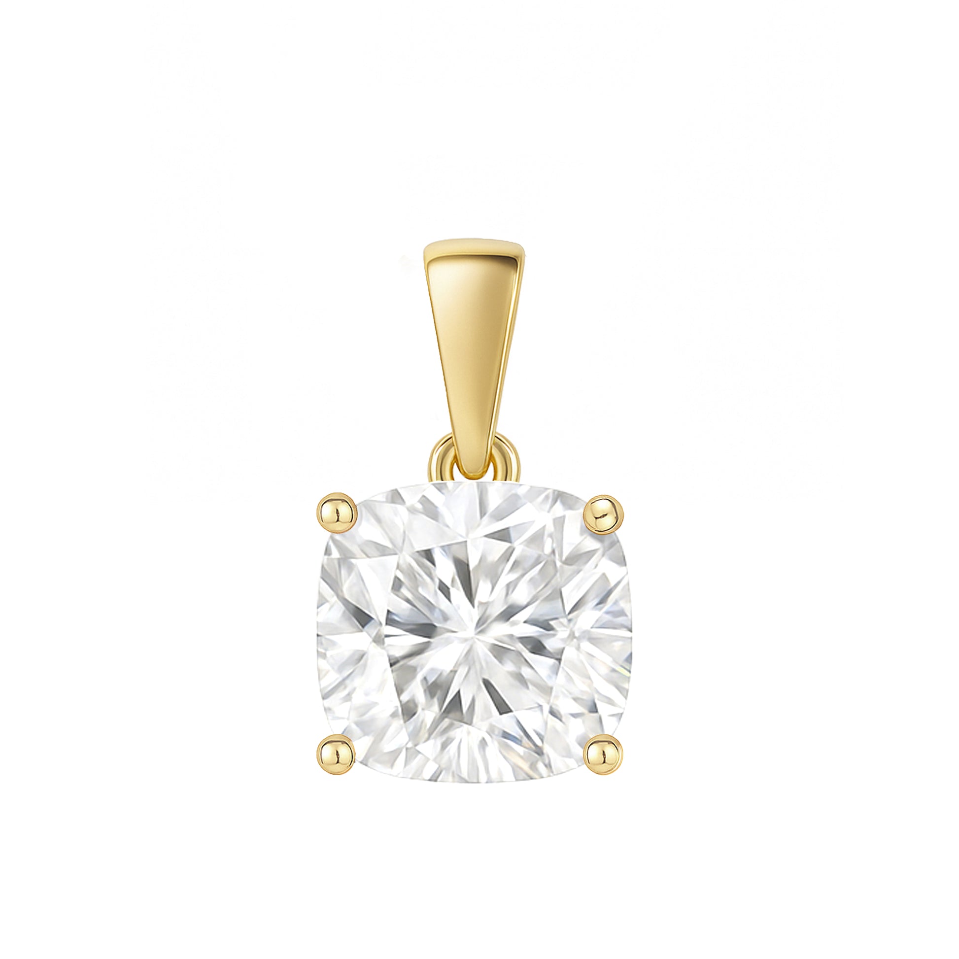 14K Gold Cushion Cut Moissanite Solitaire Pendant Only - Dangle Bail
