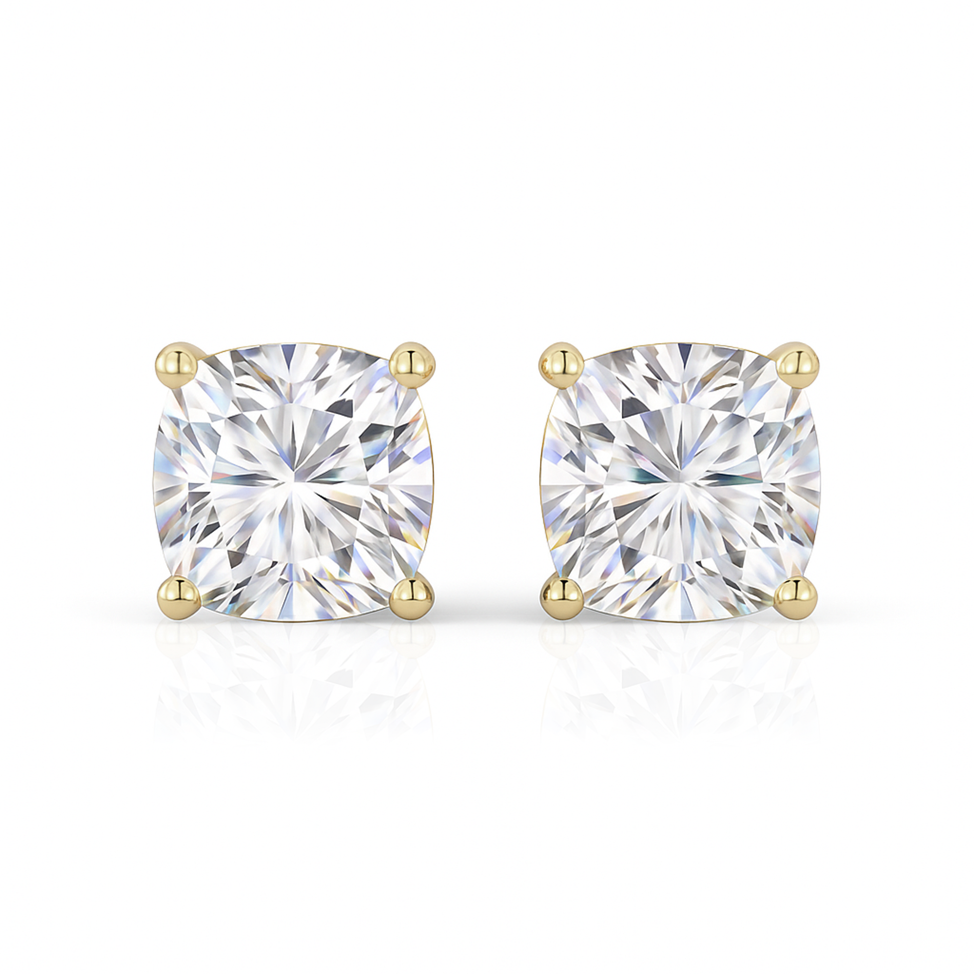14K Gold Cushion Cut Moissanite Solitaire Stud Earrings - Push Backs