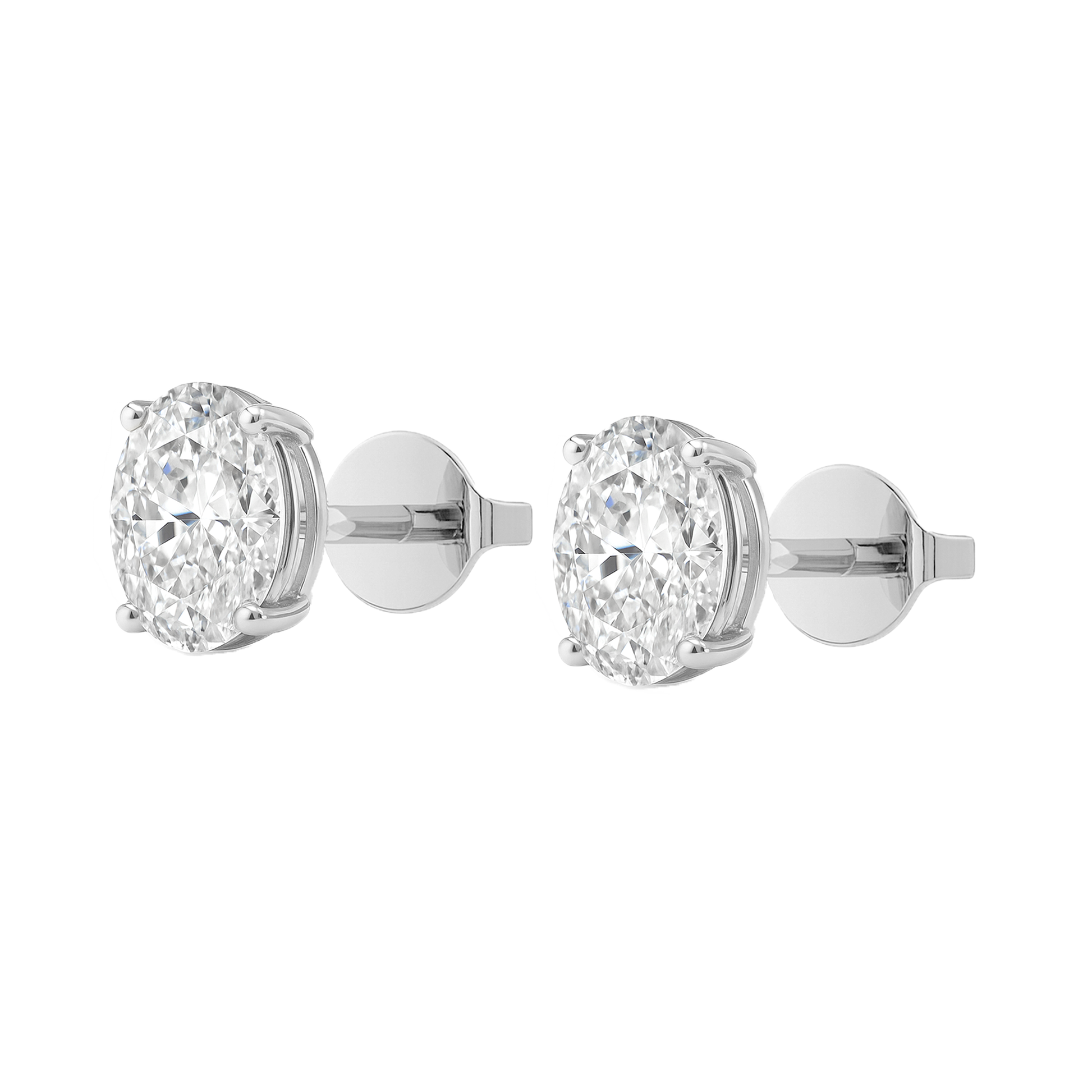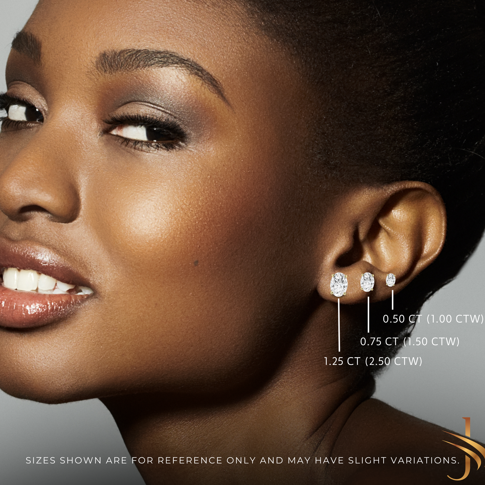 Designed to exude brilliance from every angle, each earring features a luminous oval-cut moissanite set in a sleek solitaire setting. Whether worn with a casual outfit or for a special occasion, their graceful sparkle and clean silhouette make them a versatile must-have in any fine jewelry collection.