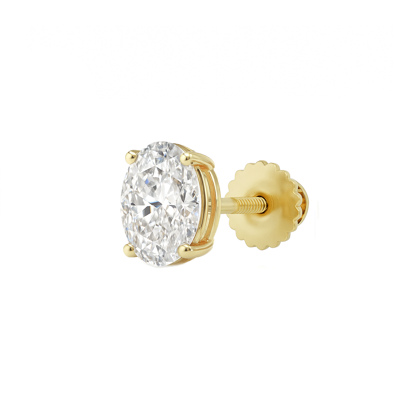 14K Gold Oval Cut Moissanite Solitaire Single Stud Earring - Screw Back