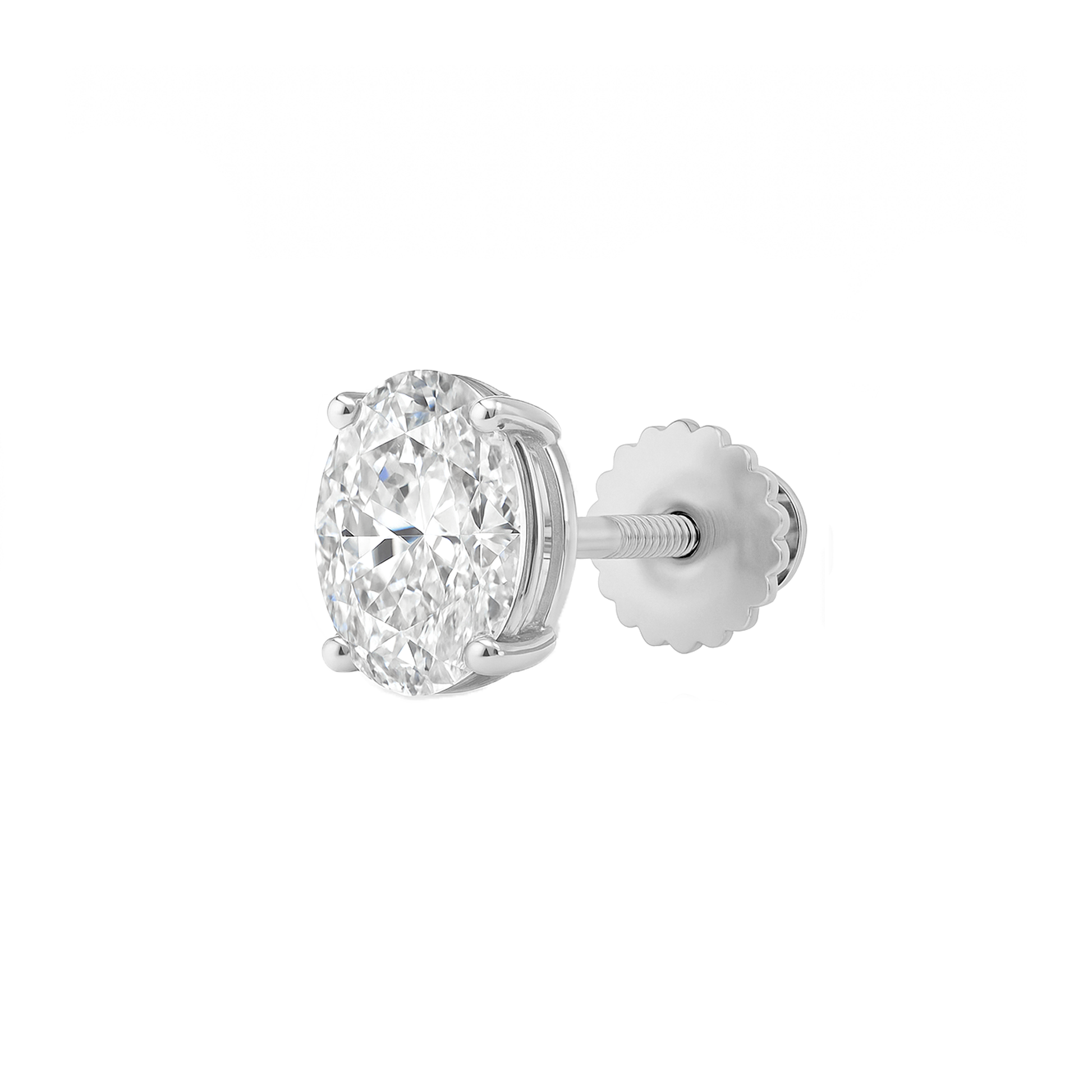 Designed to capture light from every angle, the earring showcases a luminous oval-cut moissanite set in a sleek solitaire setting. With its graceful sparkle and clean silhouette, this single stud is perfect for wearing alone, pairing, or styling in an ear stack — a versatile essential for any fine jewelry collection.
