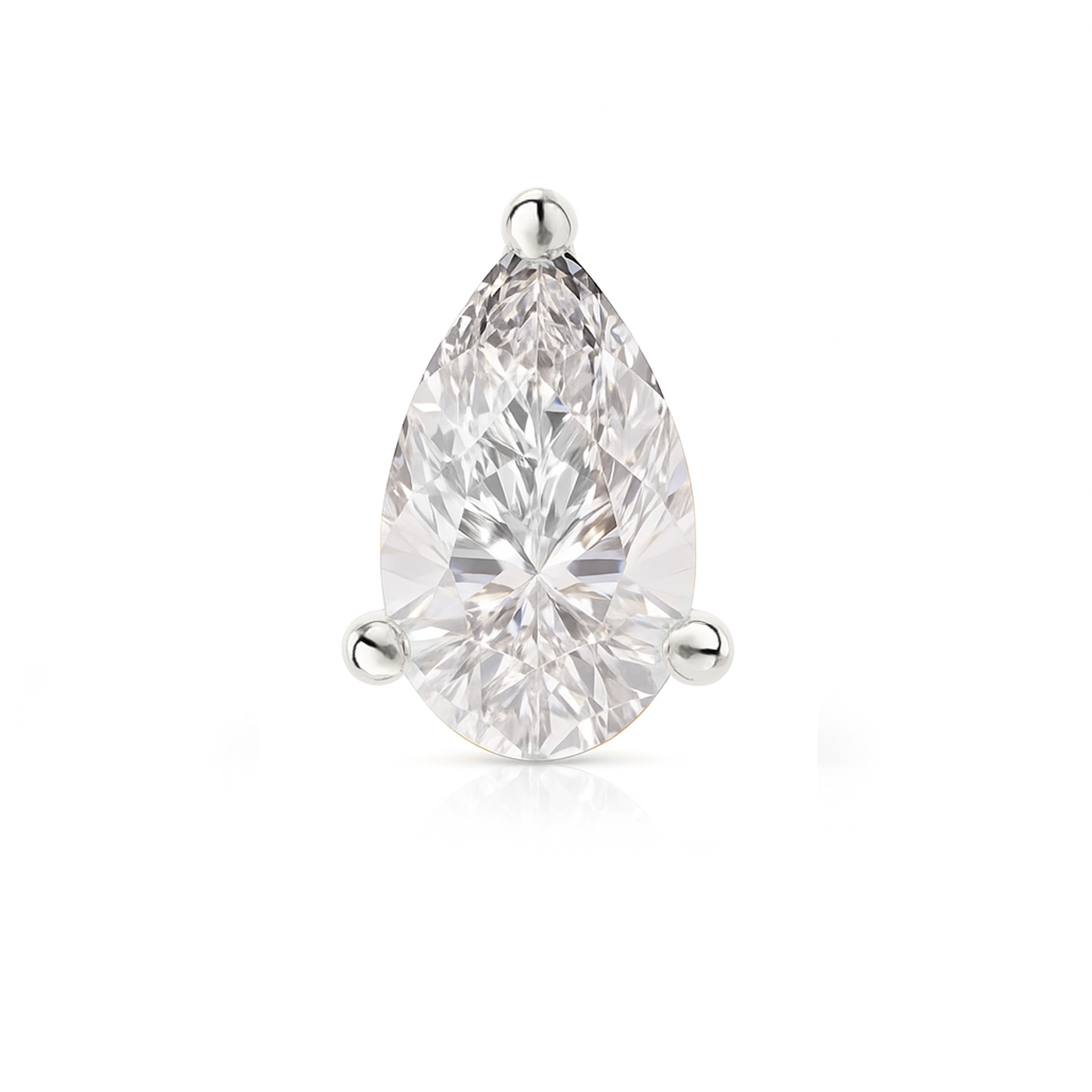 The pear cut’s graceful teardrop silhouette offers both brilliance and a soft, romantic shape that flatters any look. Secured in a classic prong setting, the single stud is perfect for second piercings, mixing and matching, or wearing solo as a subtle yet sophisticated statement.