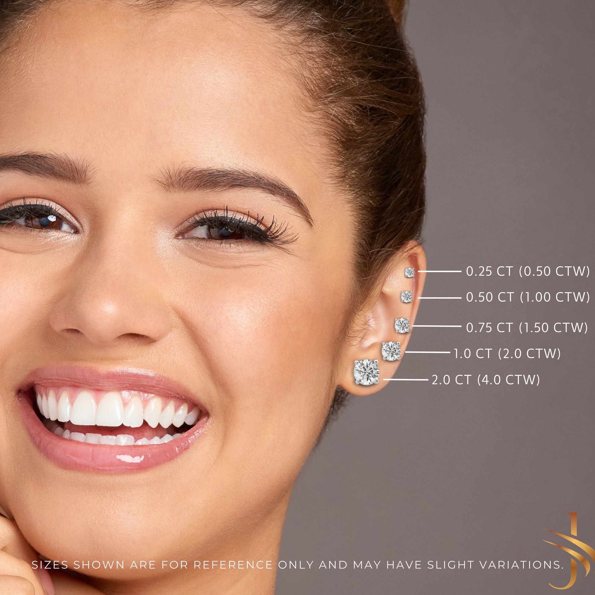 💡 Tip: Moissanite is slightly lighter than diamond, so a 1.00 CTW moissanite stud may appear slightly larger than a 1.00 CTW diamond stud.