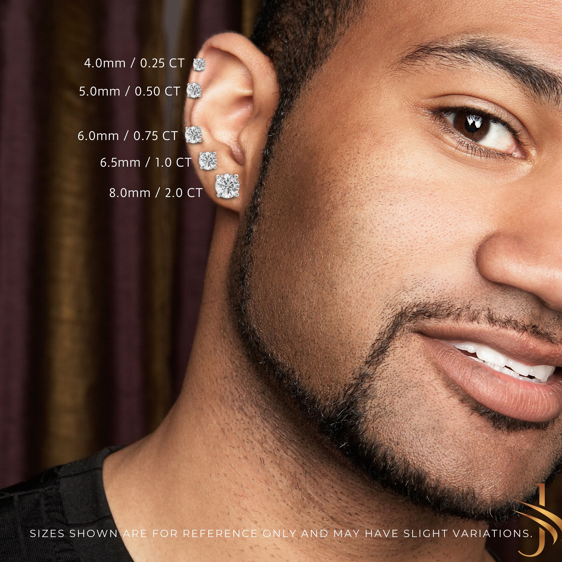 The earring features a brilliant round-cut Moissanite, celebrated for its fire, clarity, and exceptional brilliance. Set in a classic four-prong solitaire setting, this single stud offers timeless simplicity and versatile luxury — perfect for mixing, matching, or wearing as a subtle statement piece.