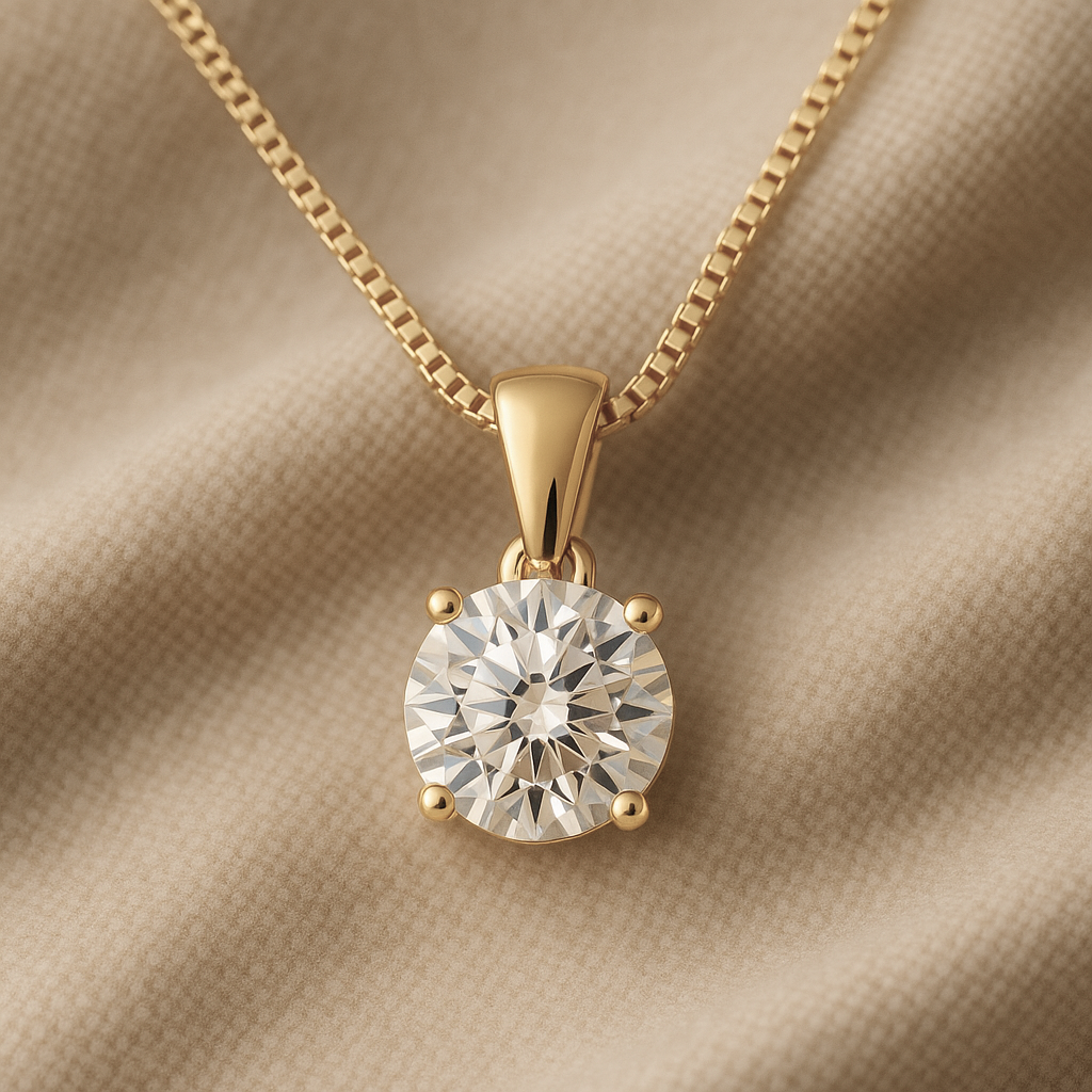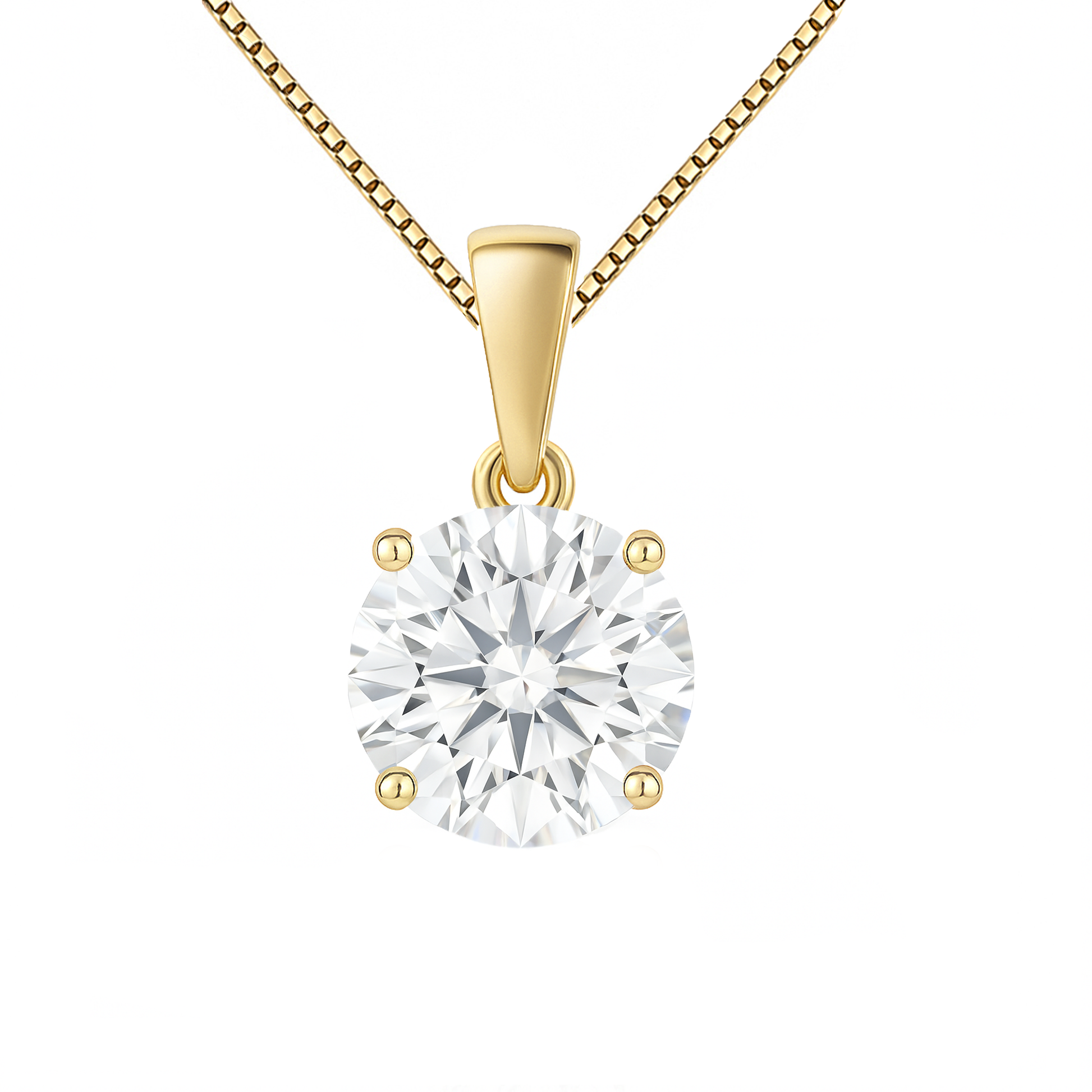 Elevate your jewelry collection with the enduring elegance of our Round Cut Moissanite Solitaire Pendant Necklace. Expertly handcrafted in your choice of solid 14K yellow or white gold, this piece features a brilliant round-cut Moissanite set in a classic 4-prong setting, designed to maximize sparkle.