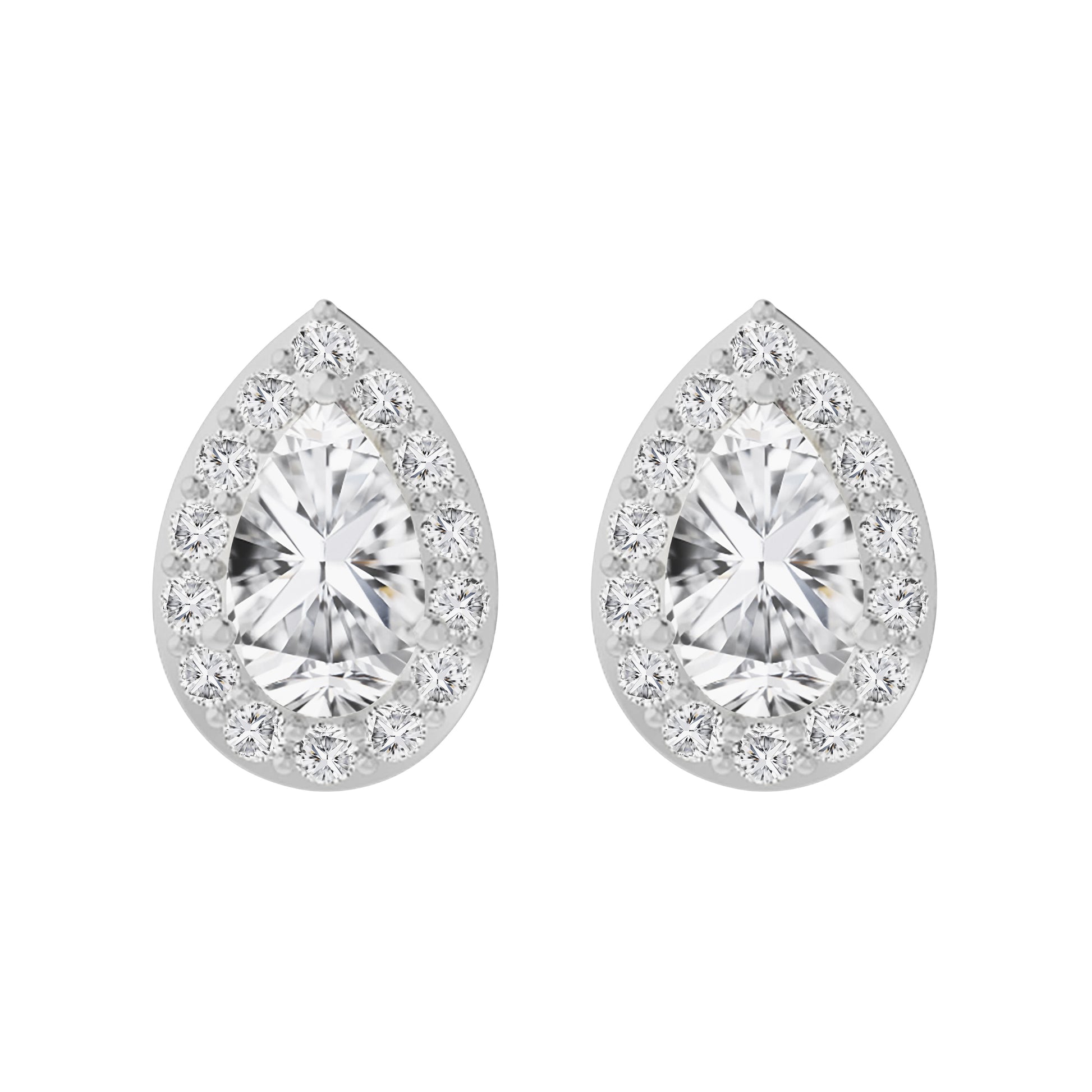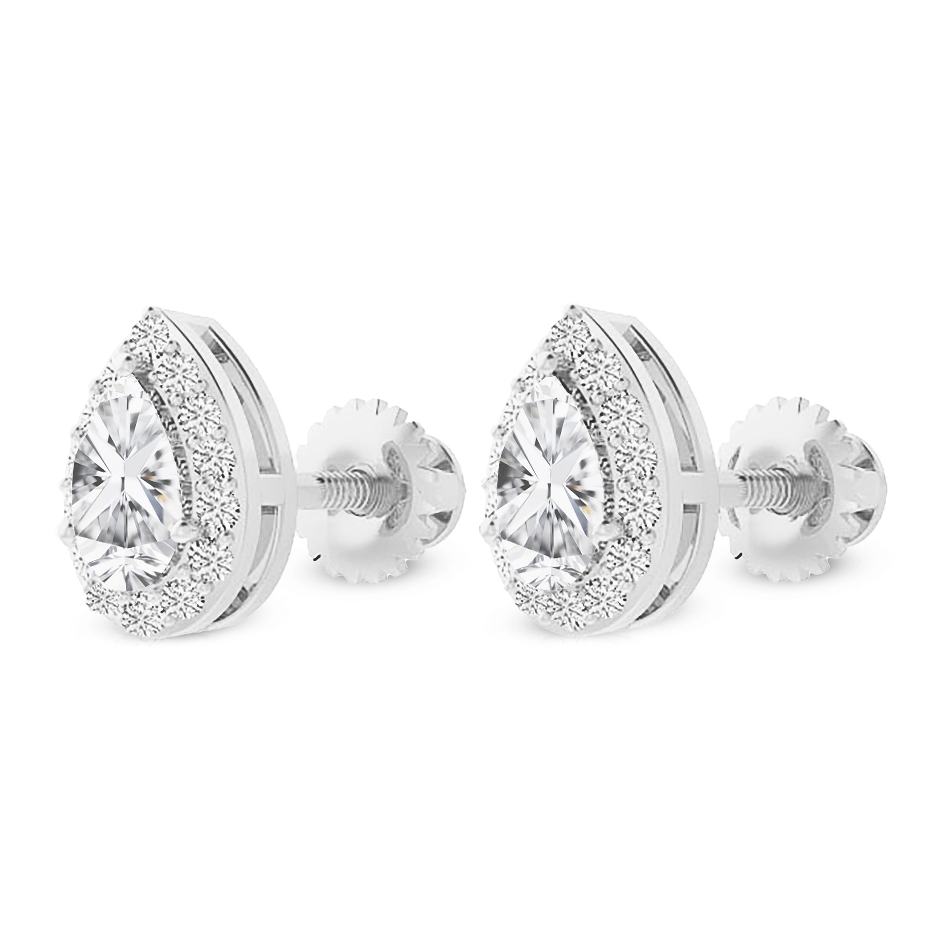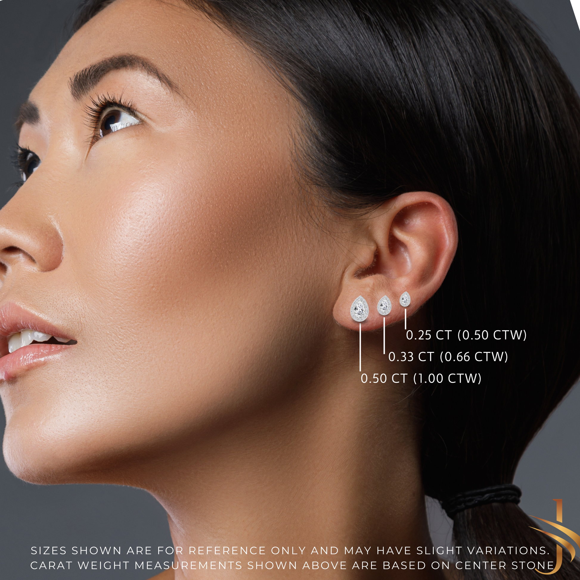 14K Gold Pear Cut Moissanite Halo Stud Earrings